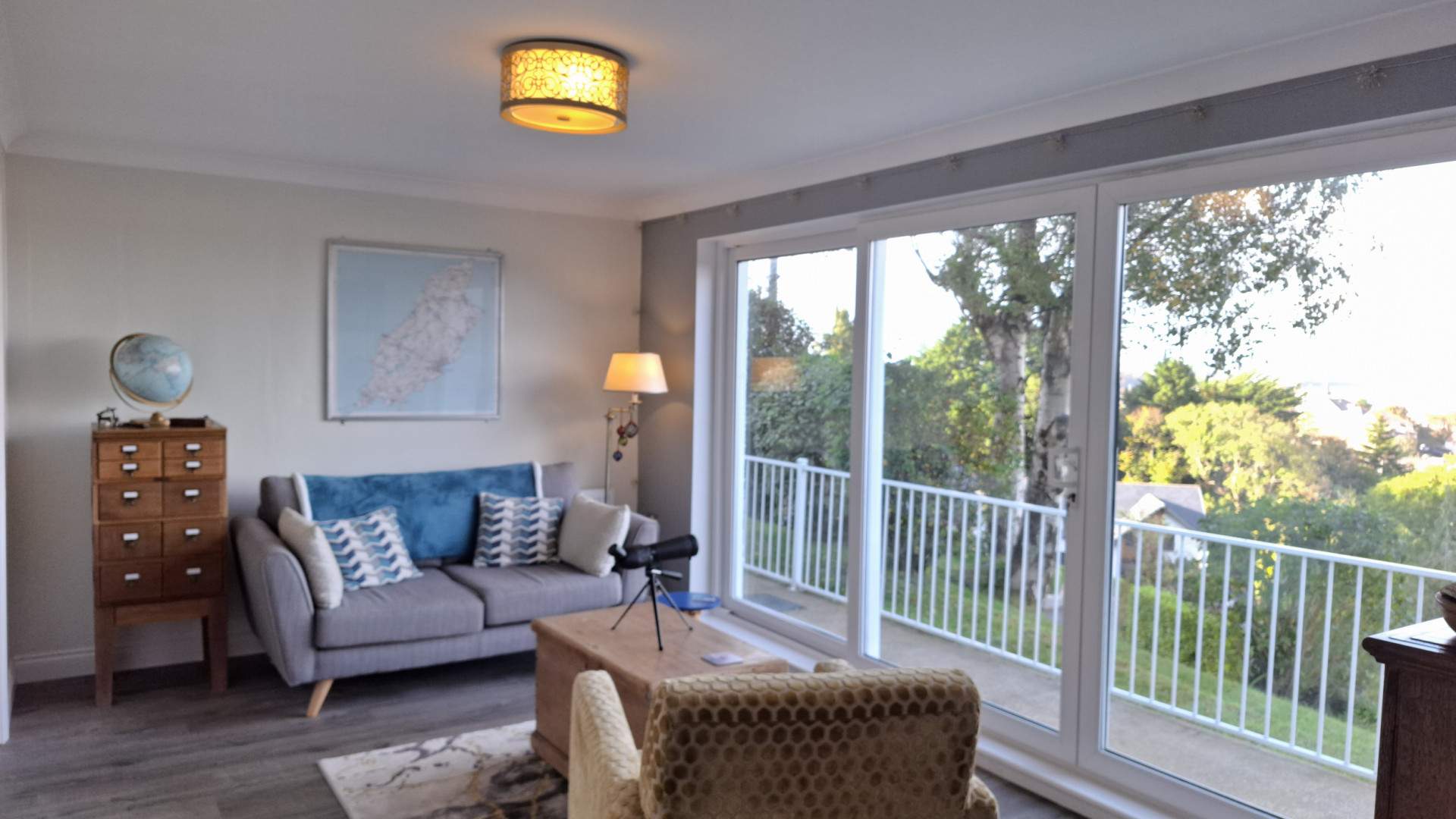 Bright and spacious room with a large uPVC double glazed window and a set of uPVC double glazed sliding doors looking on to the front aspect. The views are across Ramsey bay and of the Queens Pier. The room is finished with a ceiling light and vinyl flooring throughout.