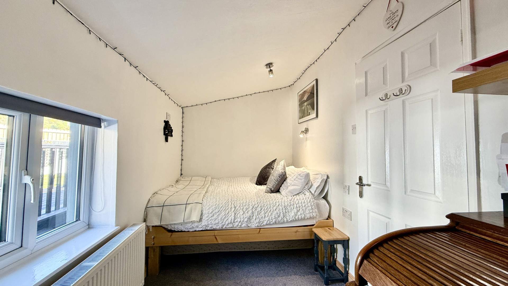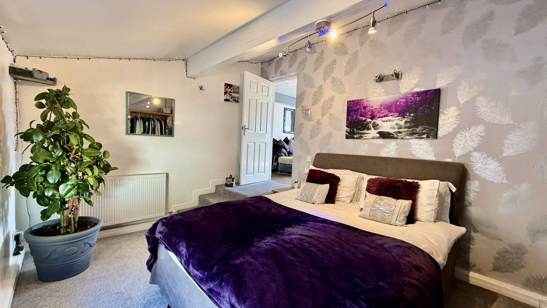 A further double bedroom with a uPVC double glazed window providing views to the front aspect. On your left when entering the room is a storage cupboard. The room is finished with a ceiling light and carpeted flooring throughout.