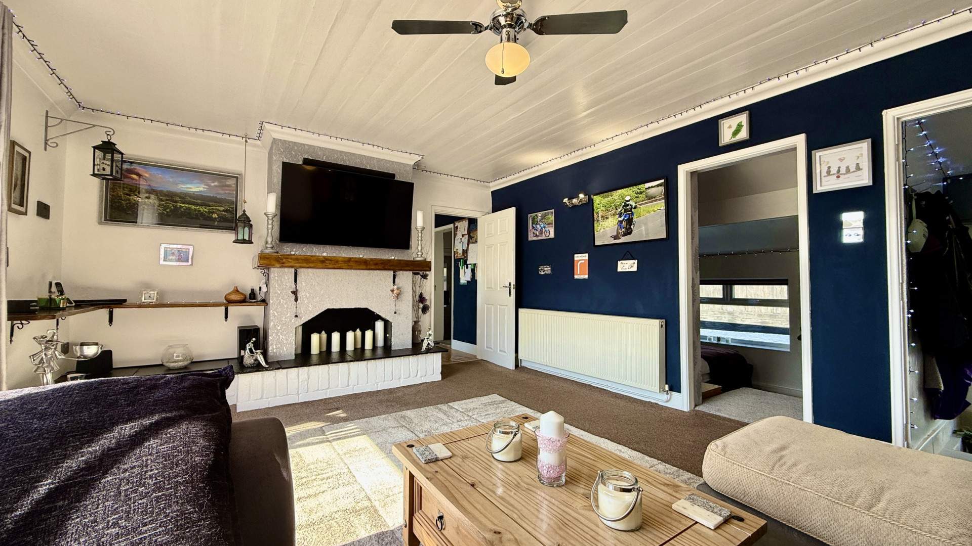 Positioned at the front of the property the lounge has a set of uPVC double glazed doors providing access on to the front aspect of the property and sea views. When entering the lounge from outside there is a door on your left which provides access to the kitchen and a fire place. Ahead of you is a further door which provides access to bedroom 1 and a porch providing access to the rear of the property. There is a corridor to your right providing access to the remainder of the property. The lounge is finished with a ceiling light and carpeted flooring.