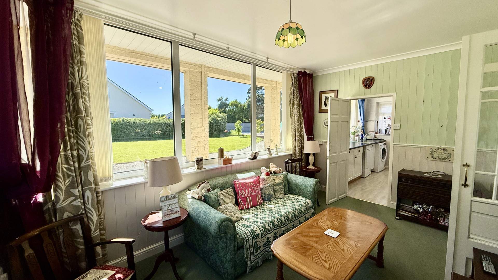 Bright room with uPVC double glazed windows to two sides, with views to the front and side aspect. A door leading from the snug room provides access to the utility. The room is finished with a ceiling light and carpeted flooring.