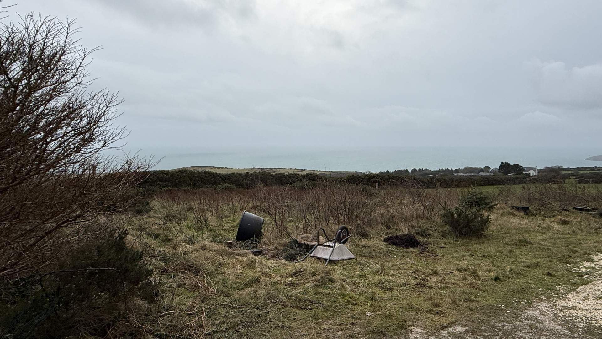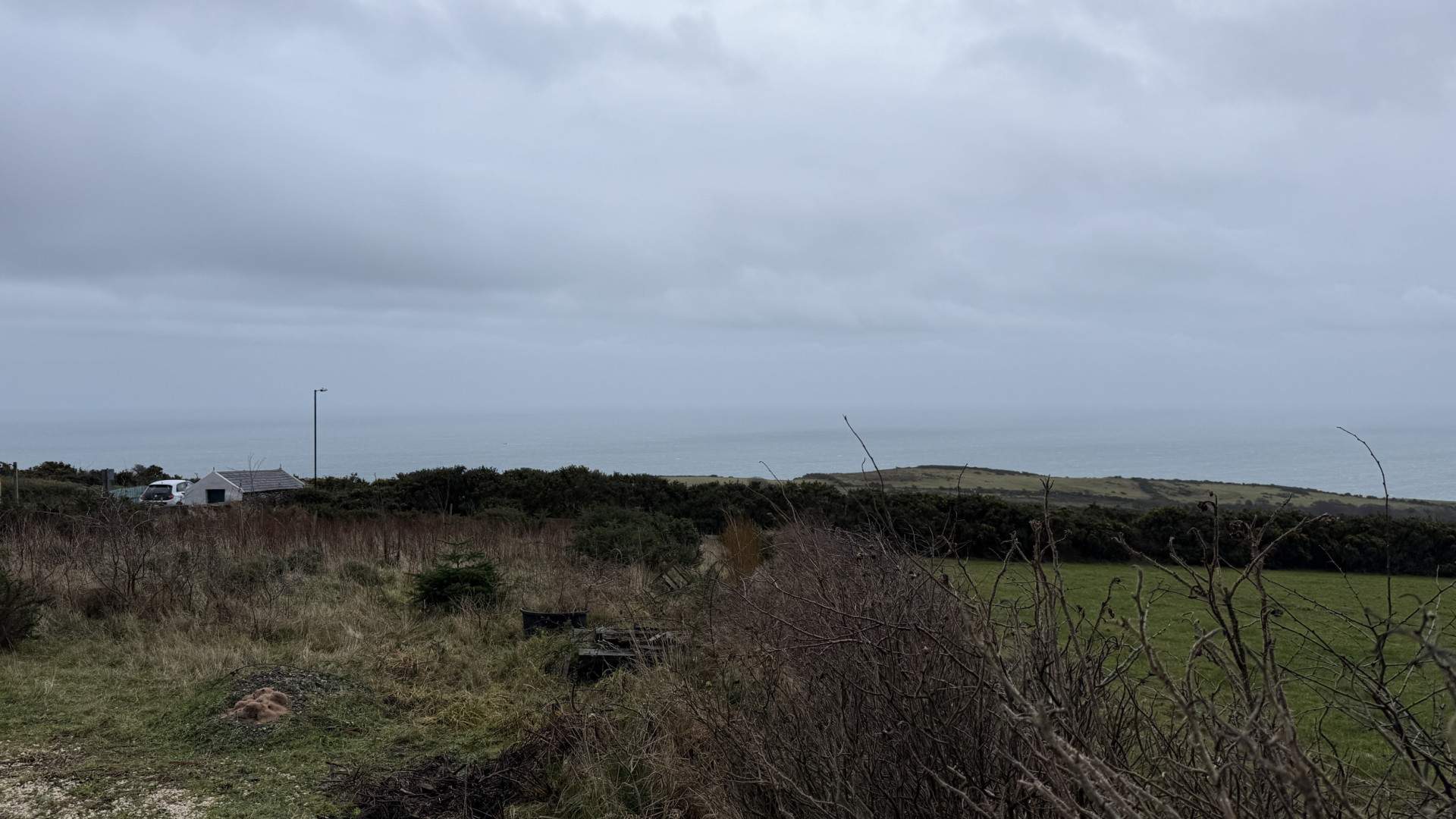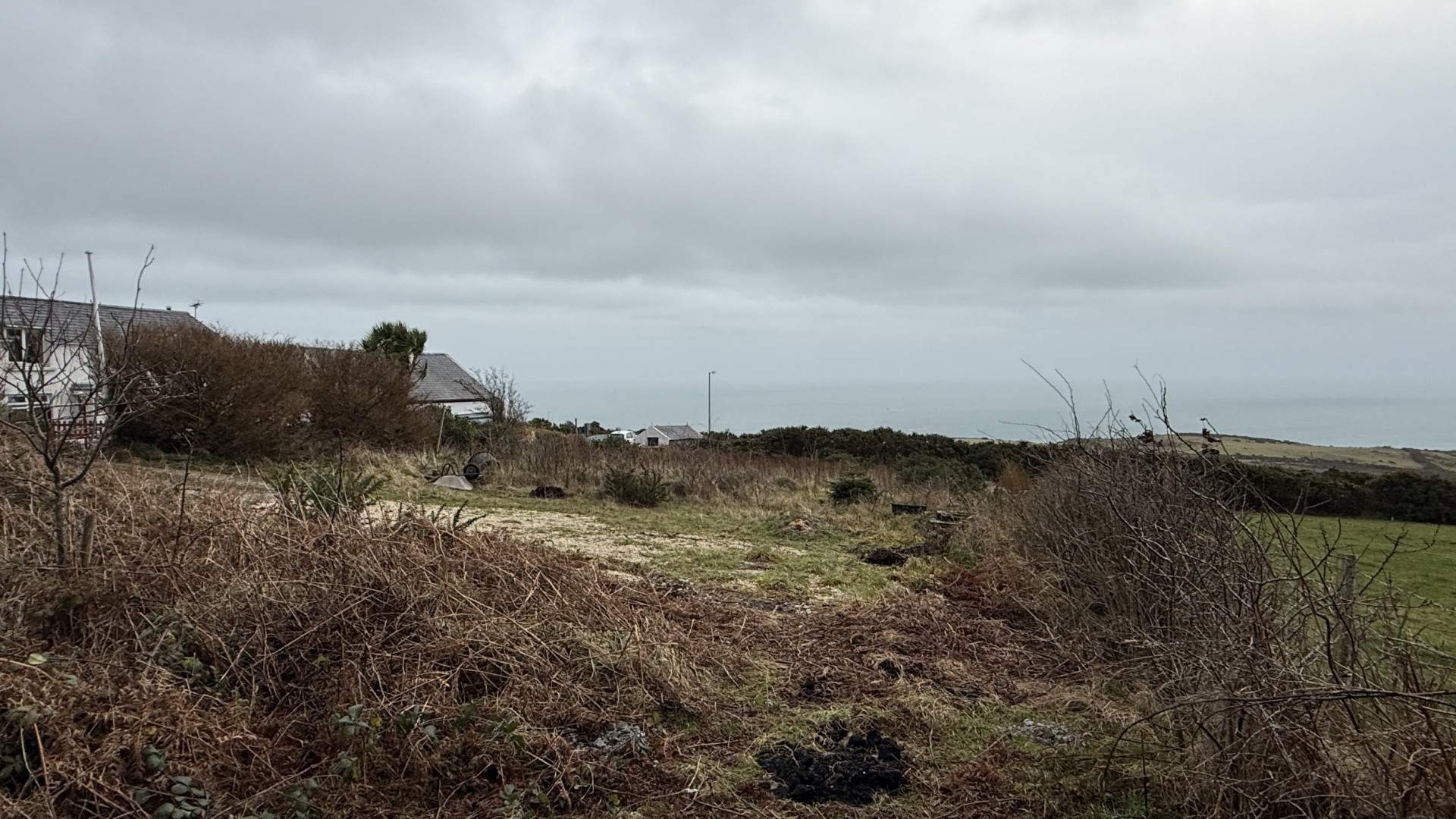 Sizeable Land – On the opposite side of the road to Keeill Cottage is a field accessed via the 7 bar design metal gate. The land with the property is from the gate on the road to the boundary to the left and right and to the hedgerow with barbed wire only ahead of you. The green field beyond is not part of the land with Keeill Cottage.
