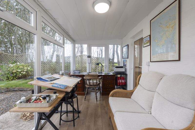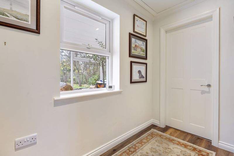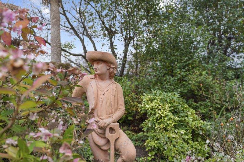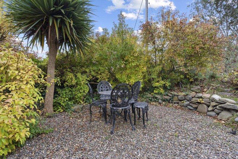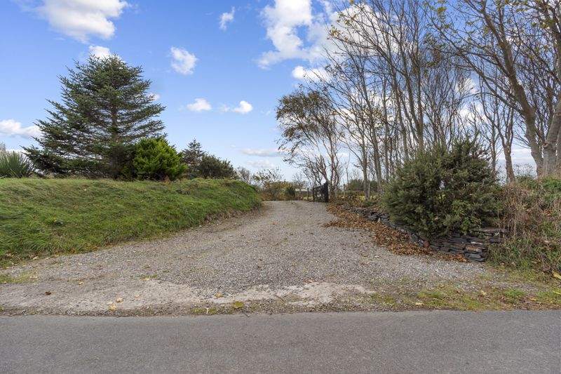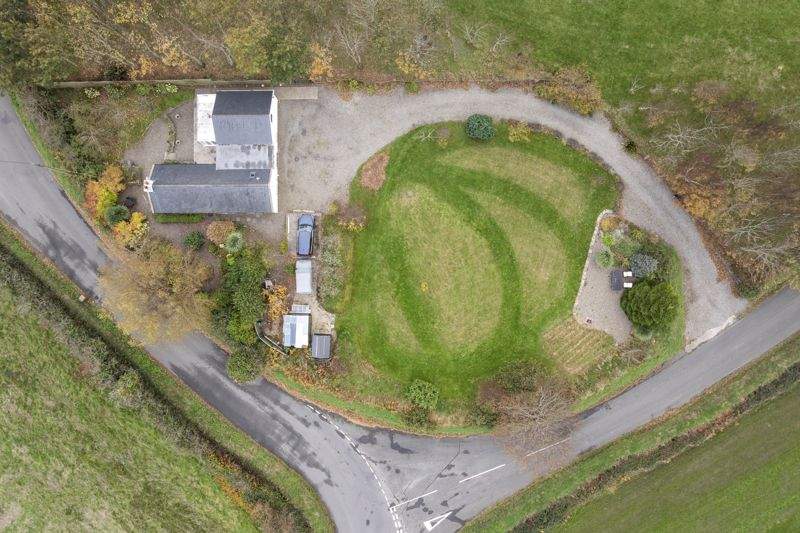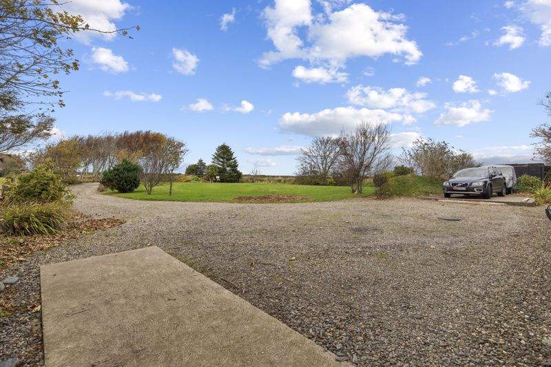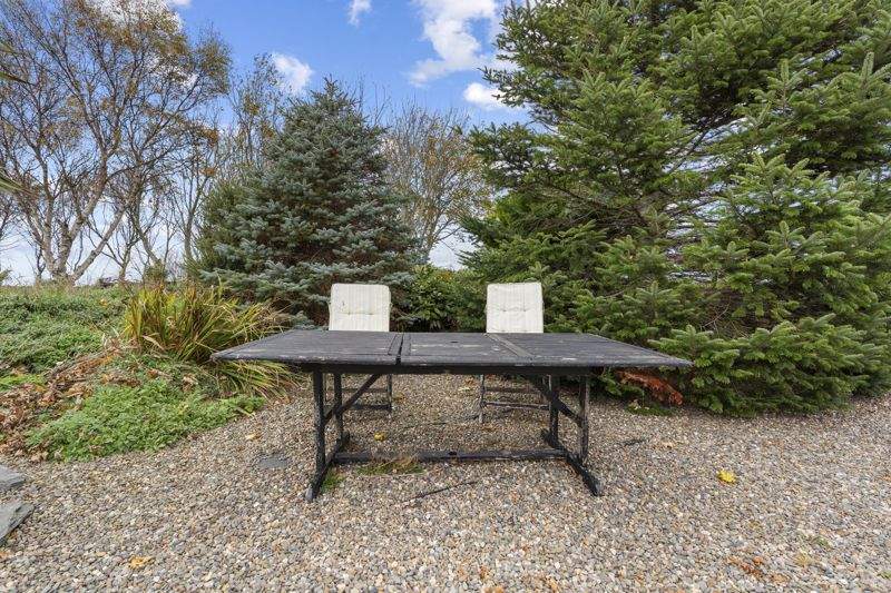 Sweeping gravelled driveway leading to extensive parking area. Large lawned area. Mature planting with trees and shrubs offer privacy.
