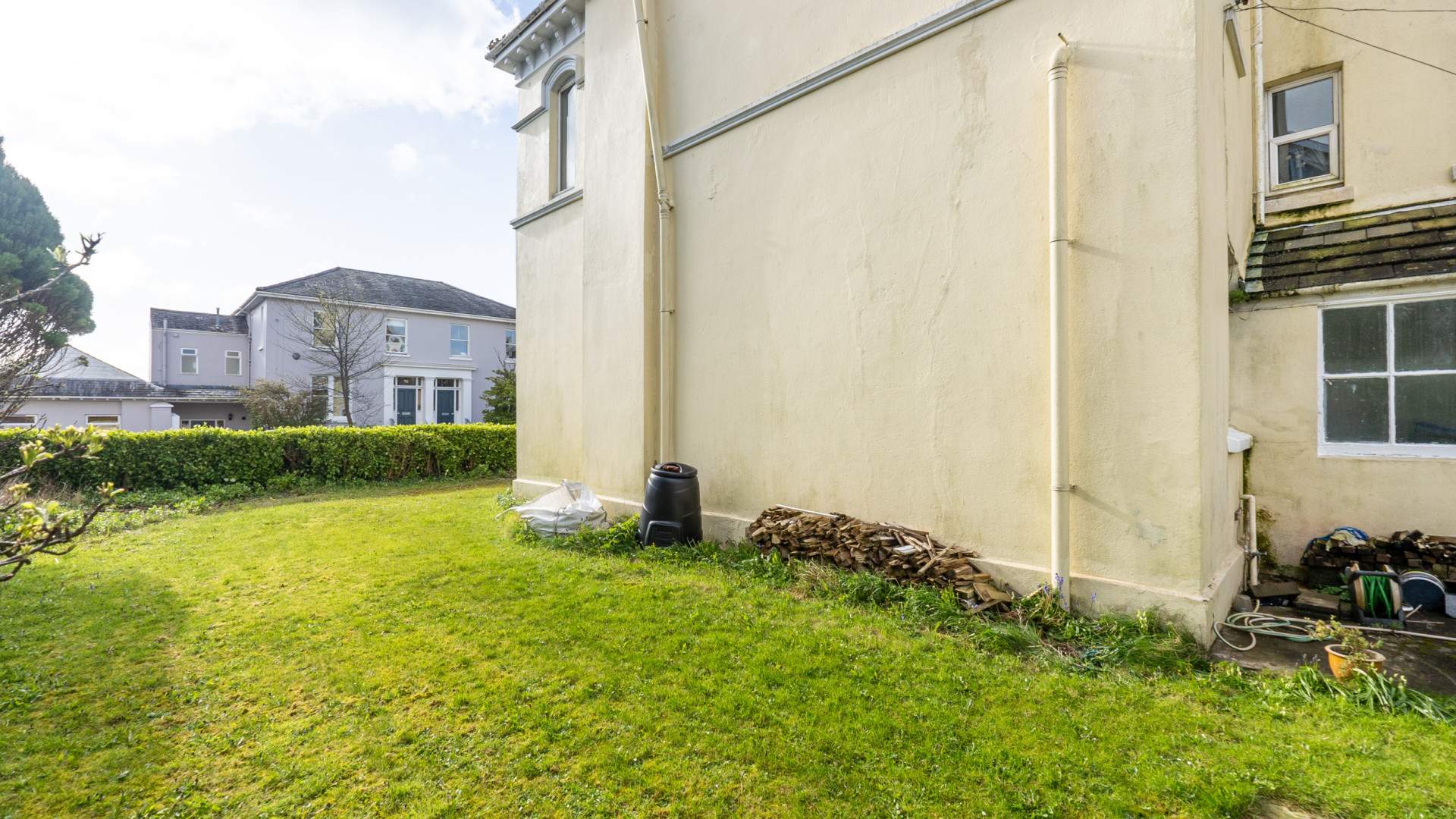 To the rear of the property there is an extensive lawned garden which wraps around to either side, with walled boundaries.