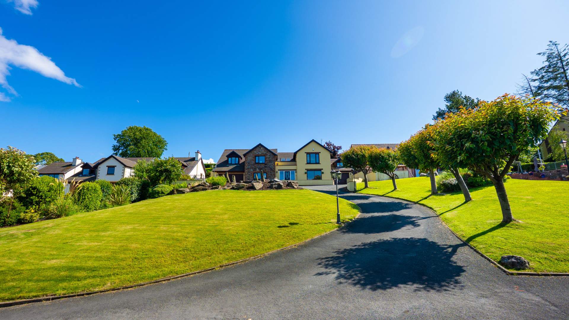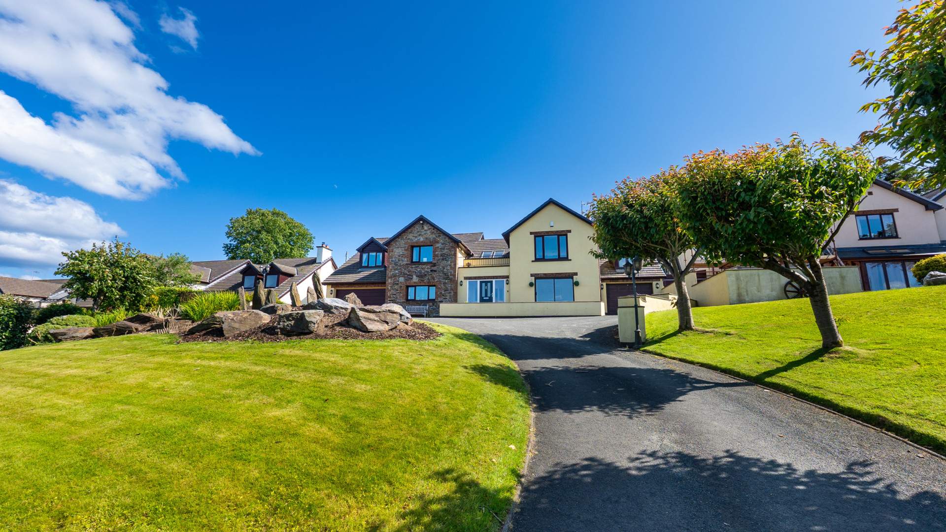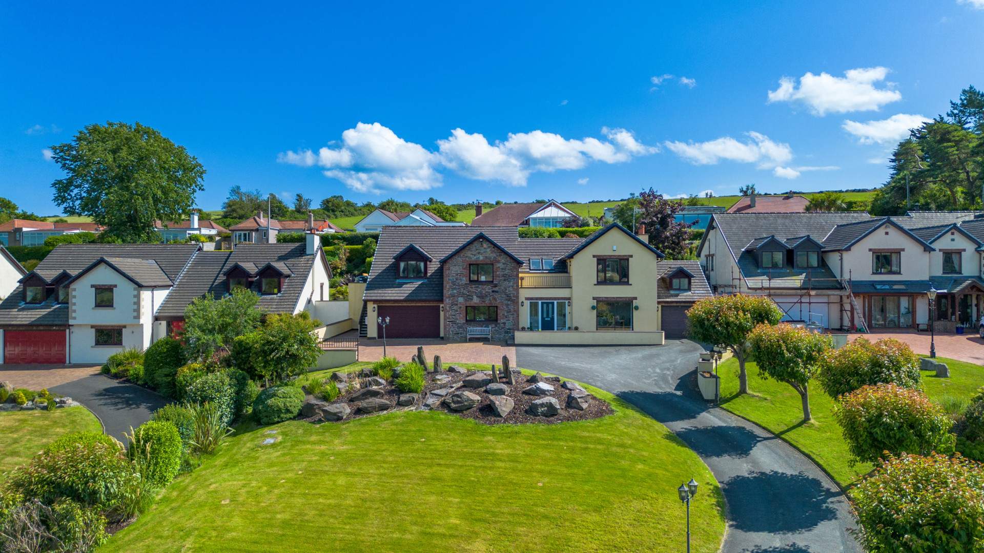 Superior Approx. 3,180sq/ft Detached 4 Bed, 4 Bath Executive Style Residence Situated in a Highly Sought After & Quiet Cul-De-Sac Location Within a 5 Minute Drive of Douglas. Picturesque Countryside Views. Landscaped Front & Rear Lawned Gardens. Integral Double Garage, Attached Single Garage & Sweeping Driveway.