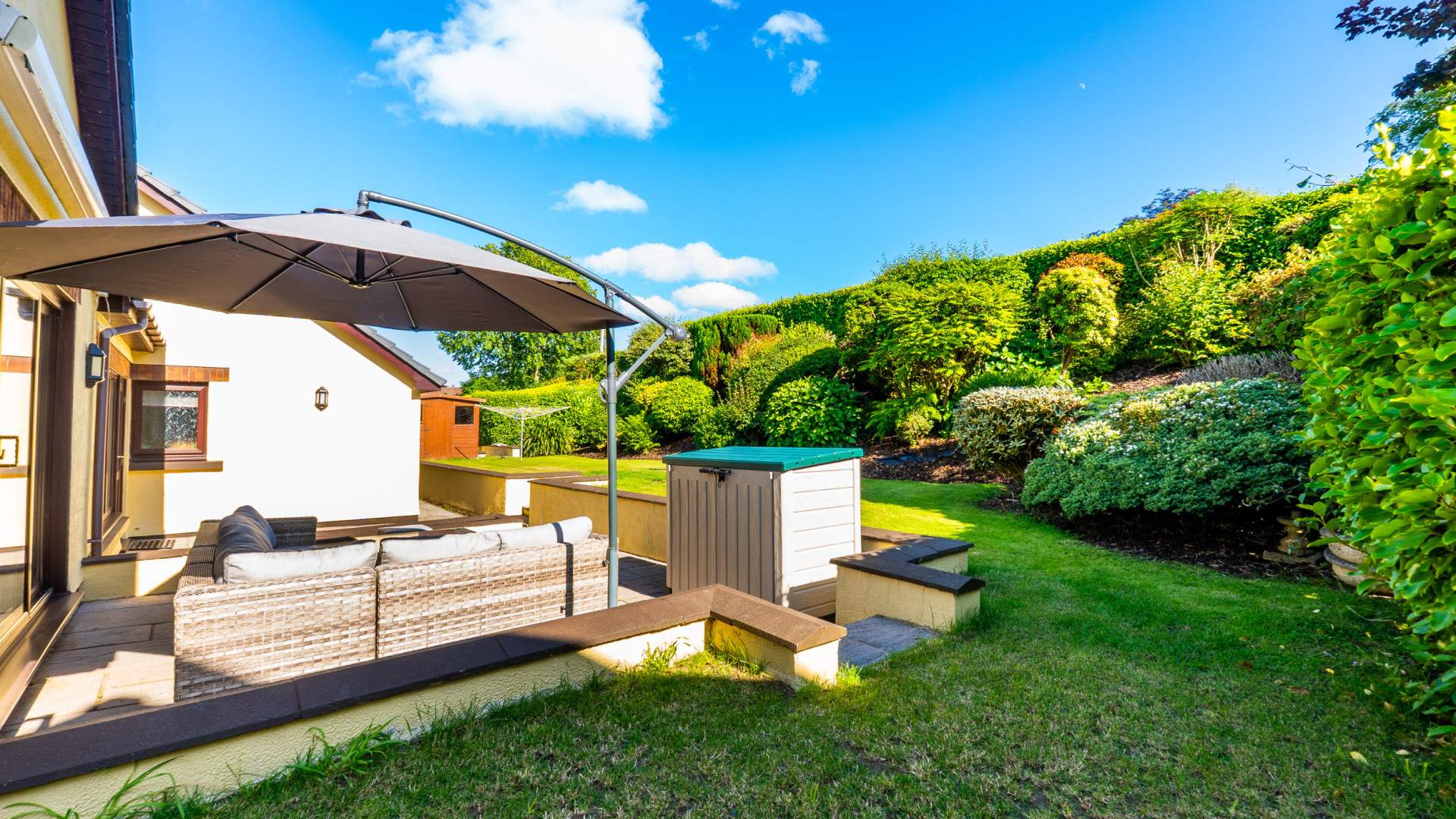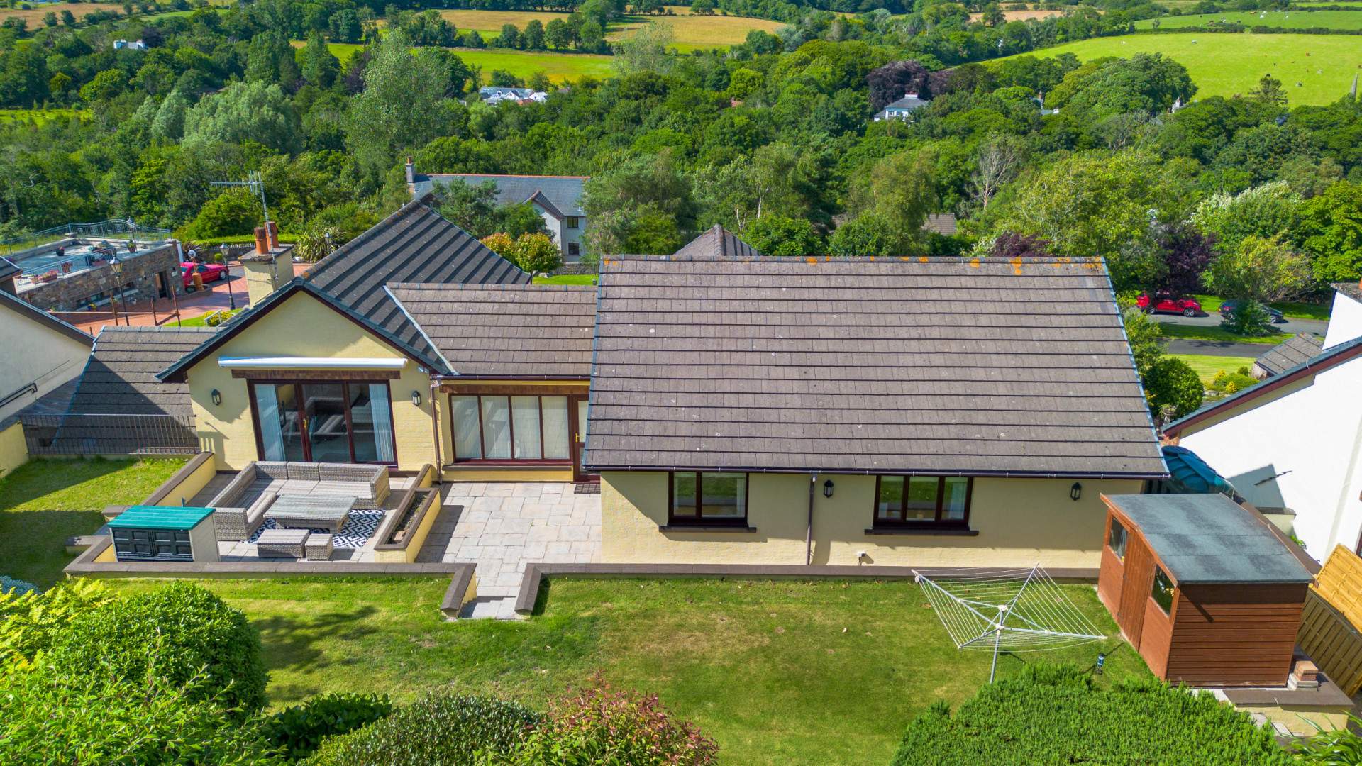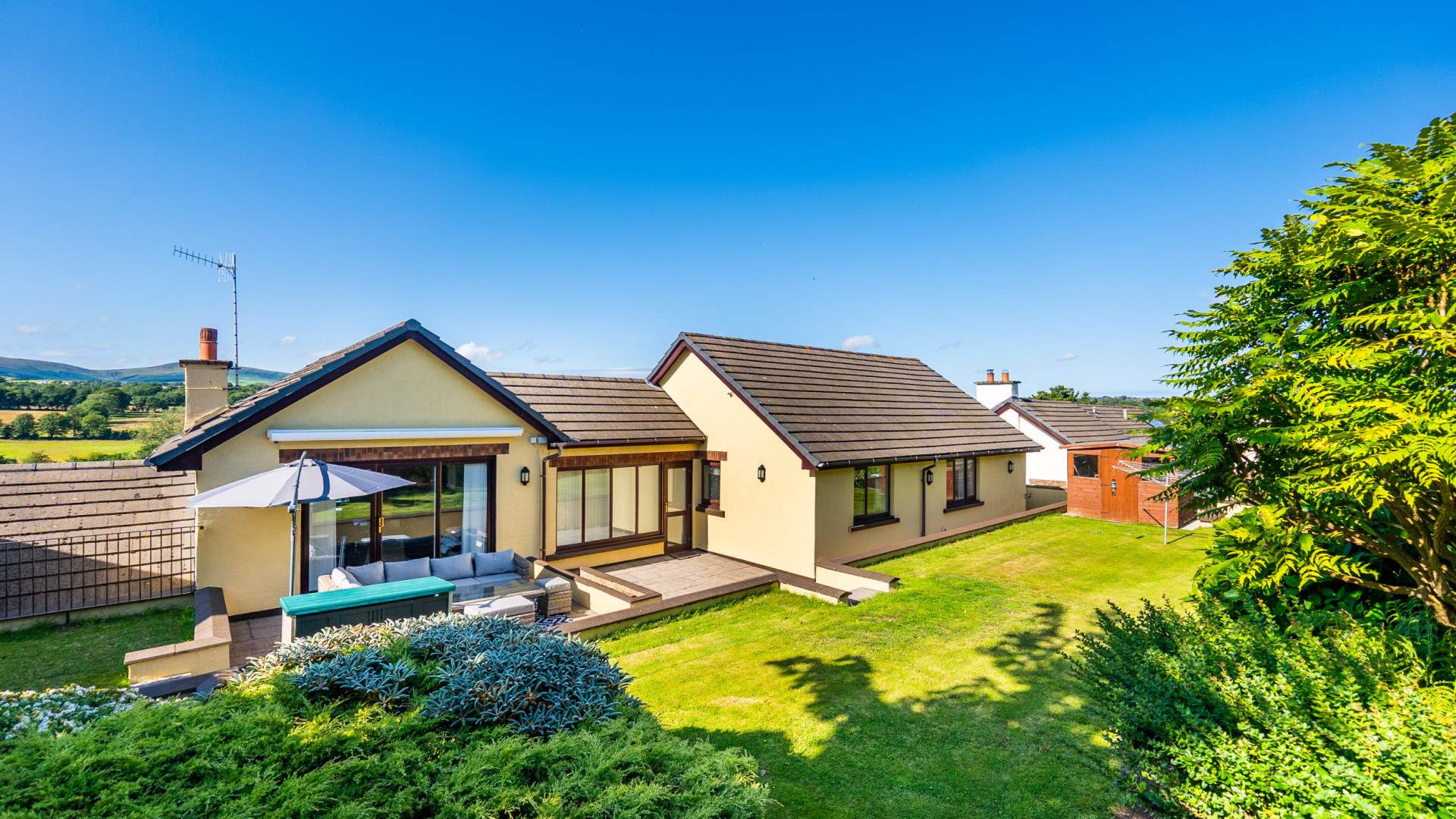 Superior Approx. 3,180sq/ft Detached 4 Bed, 4 Bath Executive Style Residence Situated in a Highly Sought After & Quiet Cul-De-Sac Location Within a 5 Minute Drive of Douglas. Picturesque Countryside Views. Landscaped Front & Rear Lawned Gardens. Integral Double Garage, Attached Single Garage & Sweeping Driveway.