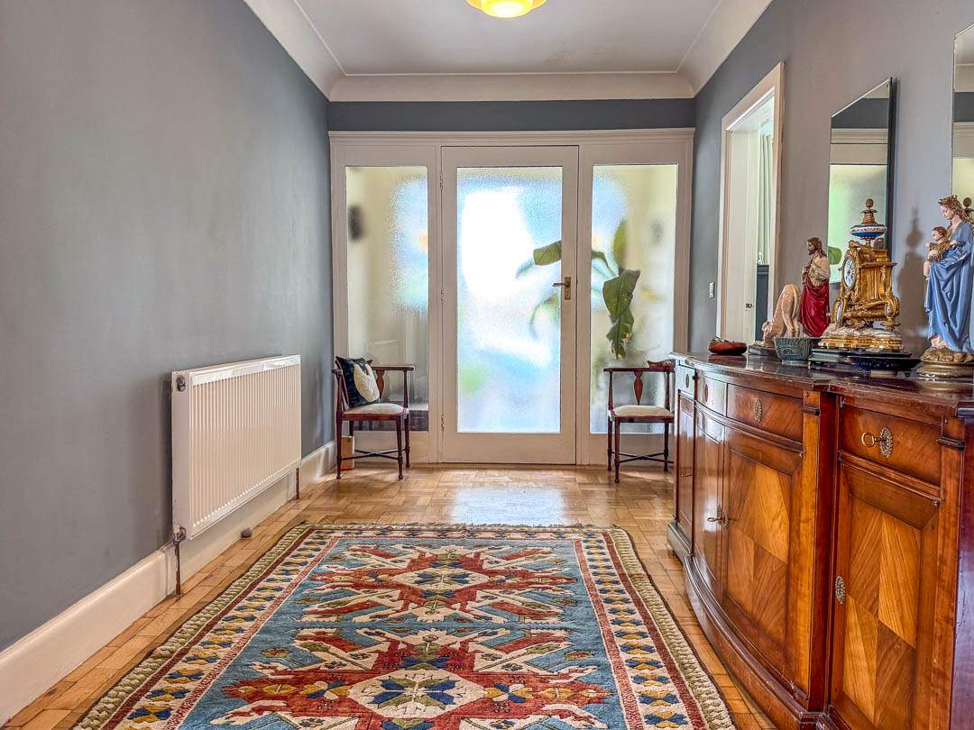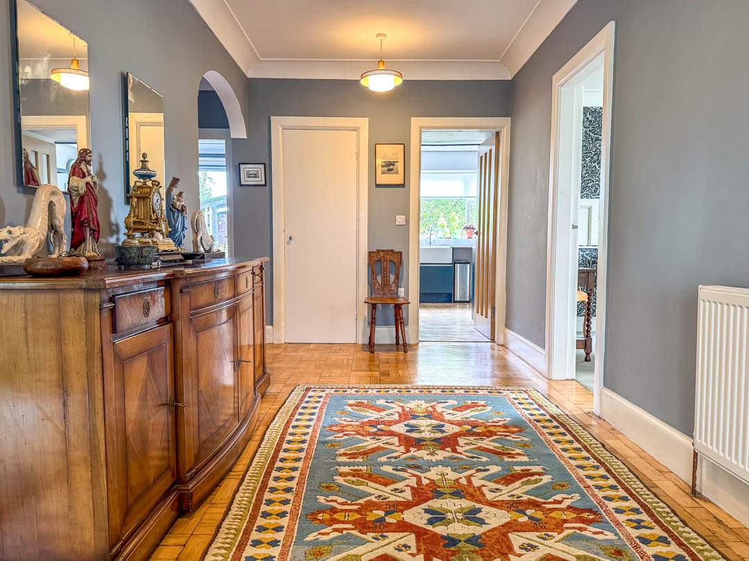 Park View benefits from many original features such as parquet flooring, feature fireplaces and dual aspect rooms offering plenty of natural light. Upon entering the property there is an entrance porch which leads through to a spacious entrance hall with parquet flooring throughout. To the front of the property, accessed off the entrance hall, is a dual aspect lounge/diner with a feature log burner, serving hatch through to the kitchen and views across Nobles Park. Kitchen situated to the rear and fitted with a range of contemporary wall, base and drawer units with marble effect worktops, built in shelving, integrated appliances, picture window looking onto the rear garden and a sliding door that takes you through to the utility area which provides access to the gardens and stairs to the lower ground floor. The large home office/study is situated to the front of the property and accessed off the entrance hall, with a large picture window overlooking Nobles Park. The family bathroom, situated on the ground floor, is fitted with a double ended bath, walk in shower cubicle, wash hand basin and WC. Lastly, bedroom 5 is situated on the ground floor overlooking the gardens and benefits from a built in wardrobe under the stairs.