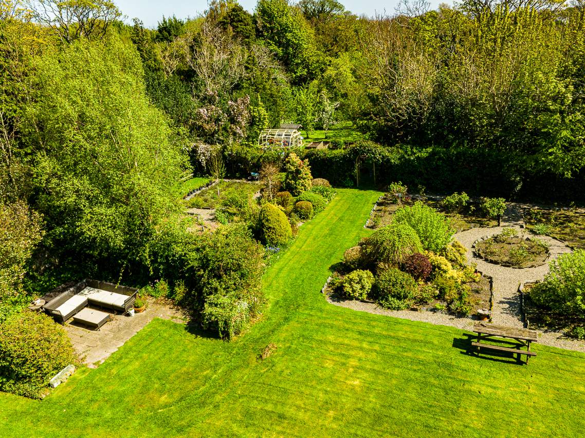 - Front and rear lawned gardens, formal rose garden, potager garden with a ‘Hartley Botanic’ greenhouse and wildlife pond