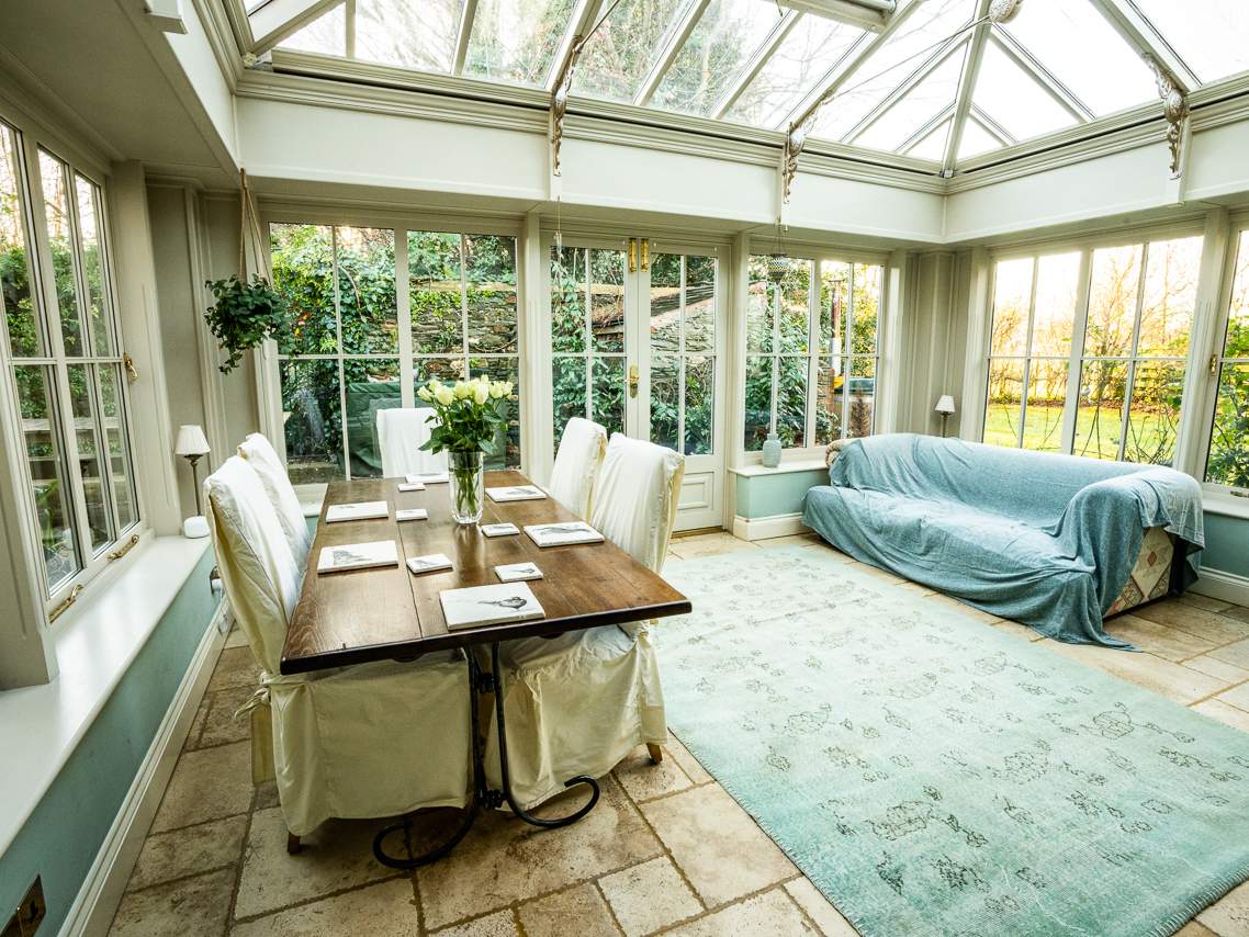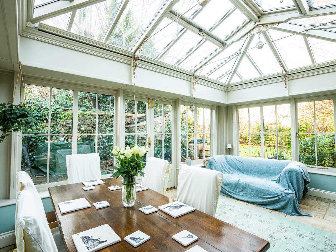 The vendor has recently lime-rendered the exterior walls, whilst interior decor has been maintained to a high standard throughout. A spacious Amdega orangery was added in 2008. Adjoining is a well-appointed hand-painted period country house kitchen, complete with an electric AGA, an array of units and granite worktops plus well-fitted pantry. The utility room is fitted with further bespoke units and leads off from the kitchen. Additionally, there is a formal living room, cosy family sitting room and wonderful separate dining room with bay window and large inglenook fireplace.