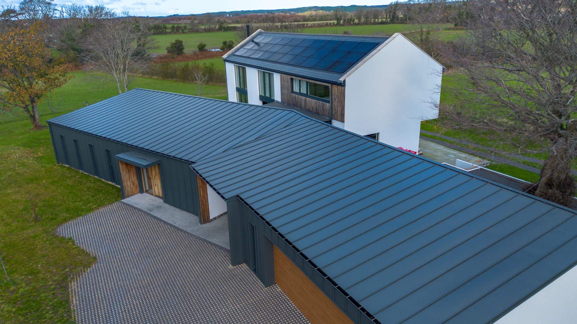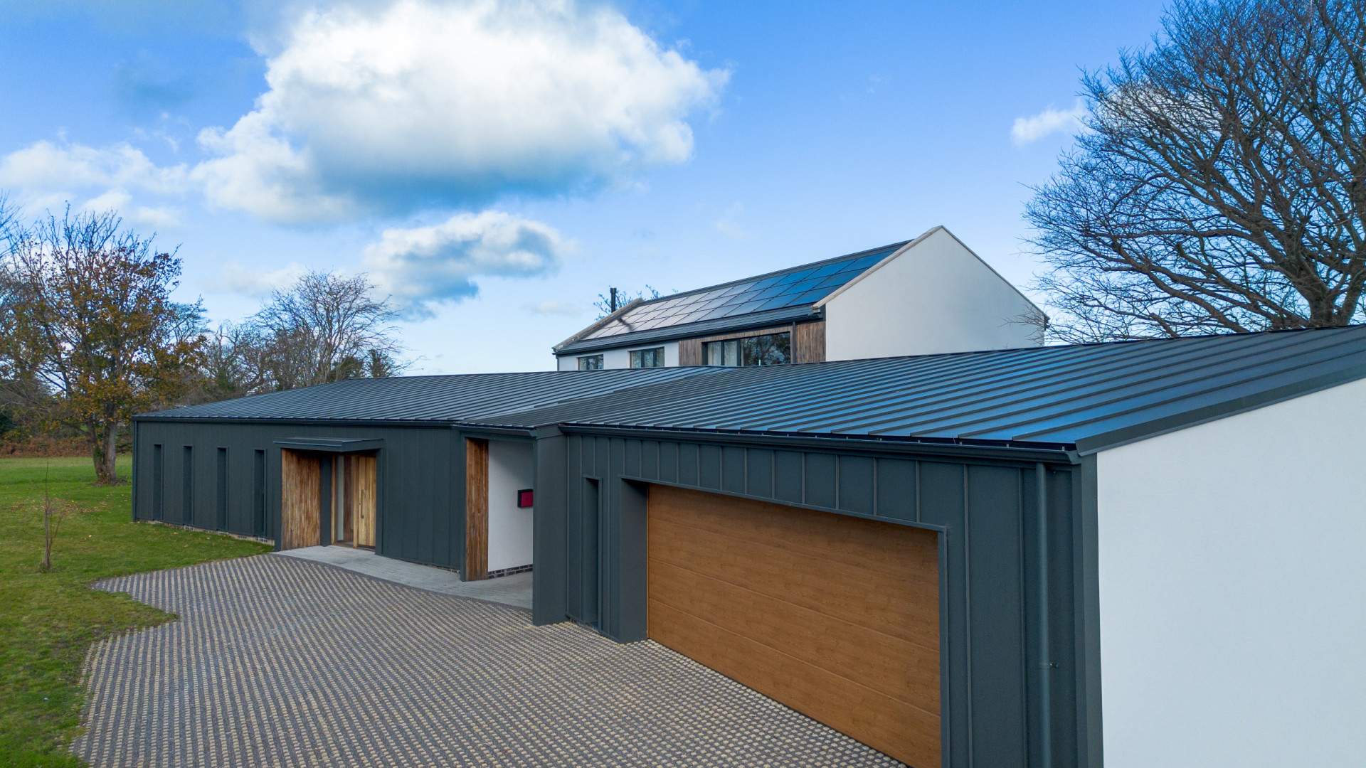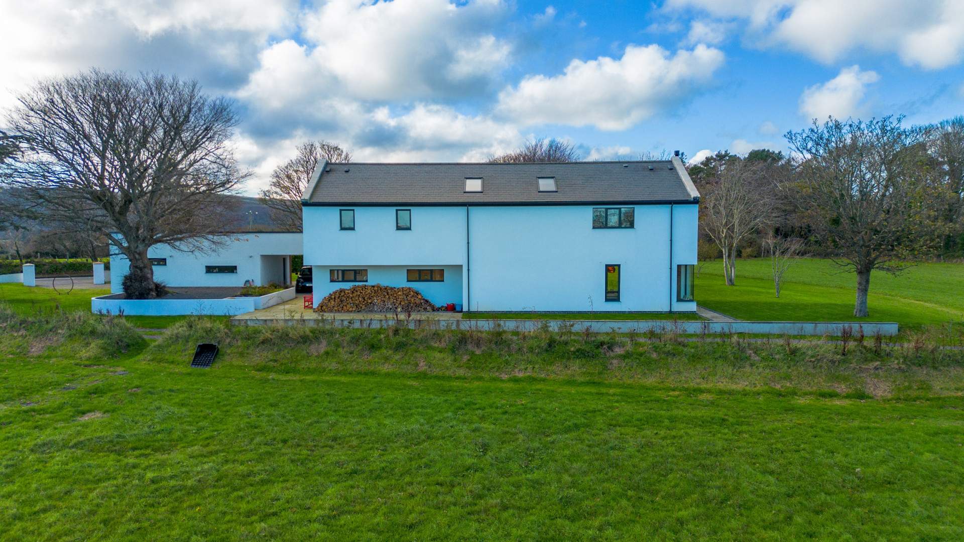Entering through a large timber door into the bright and spacious hallway. To your left when entering the property is the family room at the end of the hallway, a double bedroom with en-suite bathroom and a storage cupboard. To your right is the utility with a bathroom and the plant room for the property. Beyond the utility on your right hand side is a WC, the office and doors to the lounge/dining/kitchen are at the end of the entrance hall. A set of sliding doors prior to the kitchen provides access to the court yard.