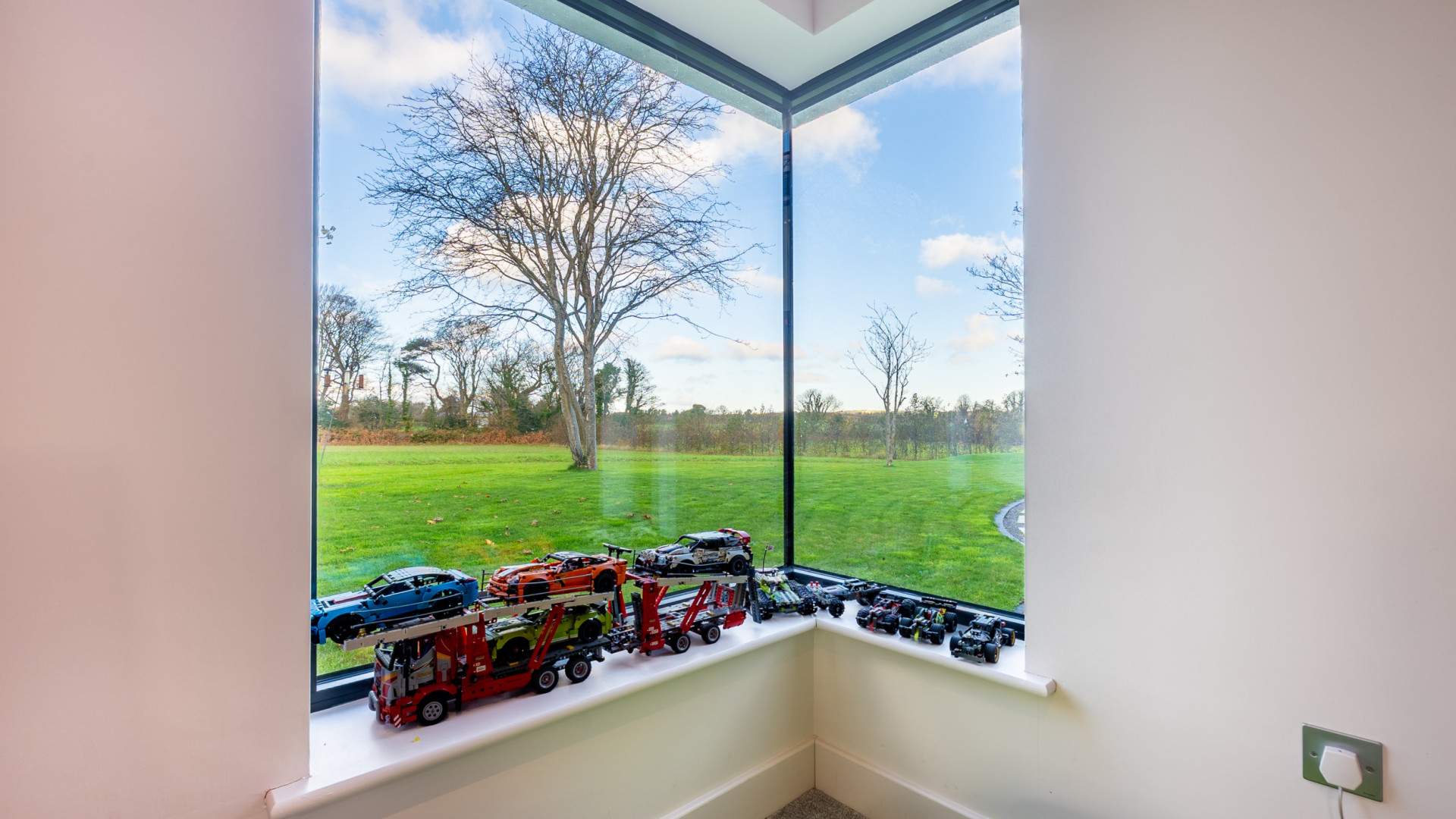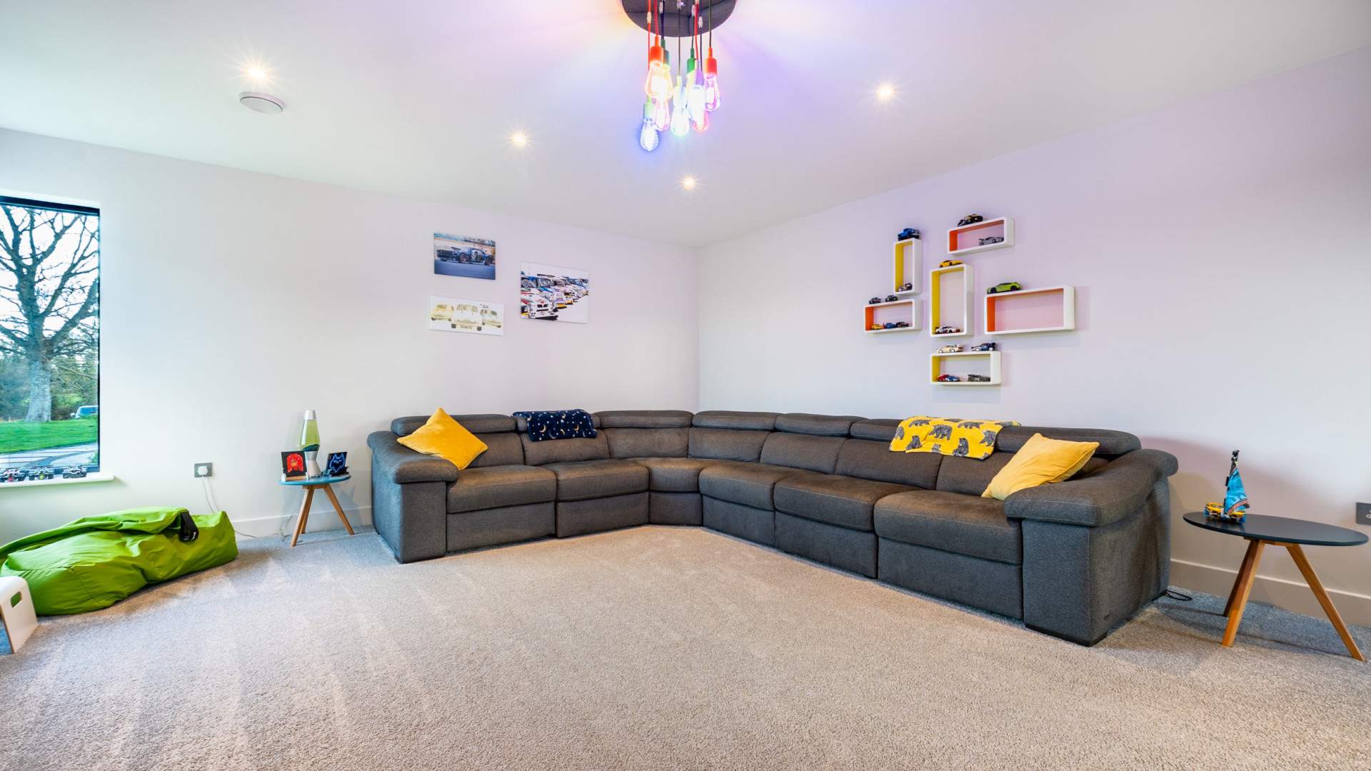 Adjacent to the lounge/kitchen/diner the spacious office has views on to two aspects of the property, with a large window on the right of the room when entering providing lots of natural light. The office is finished with recessed ceiling lights and carpeted flooring.