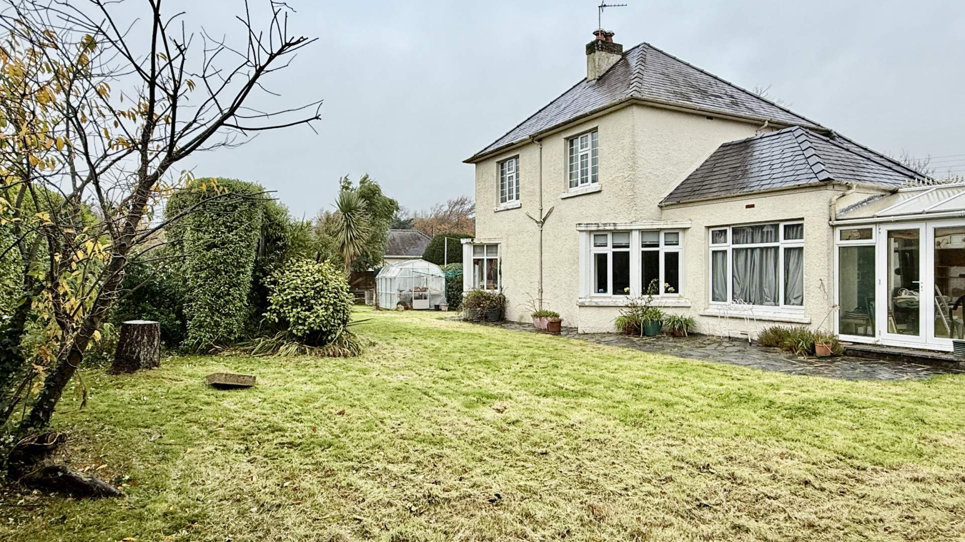 To the rear of the property there is a large, private lawned garden with a greenhouse. Outside the double doors from the conservatory is a patio area which extends to in front of the sitting room. There is a large greenhouse, planting areas and shrubs throughout.