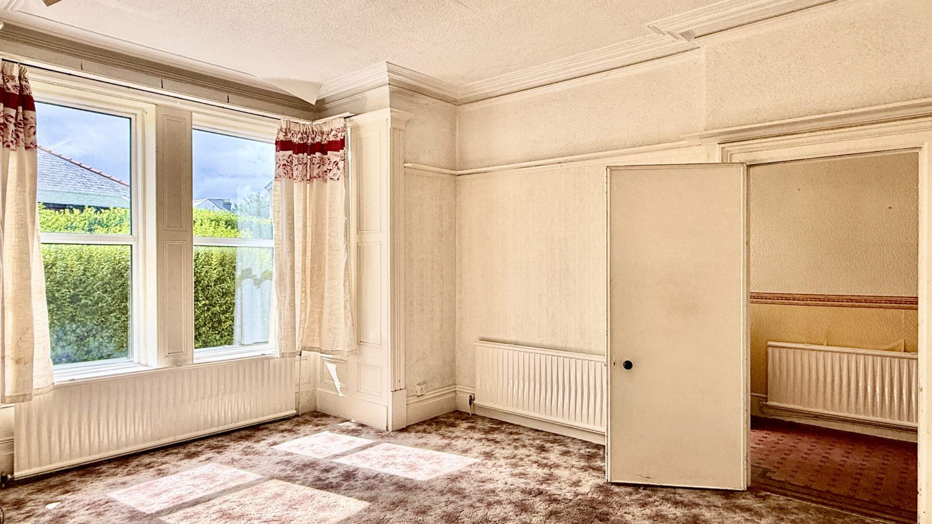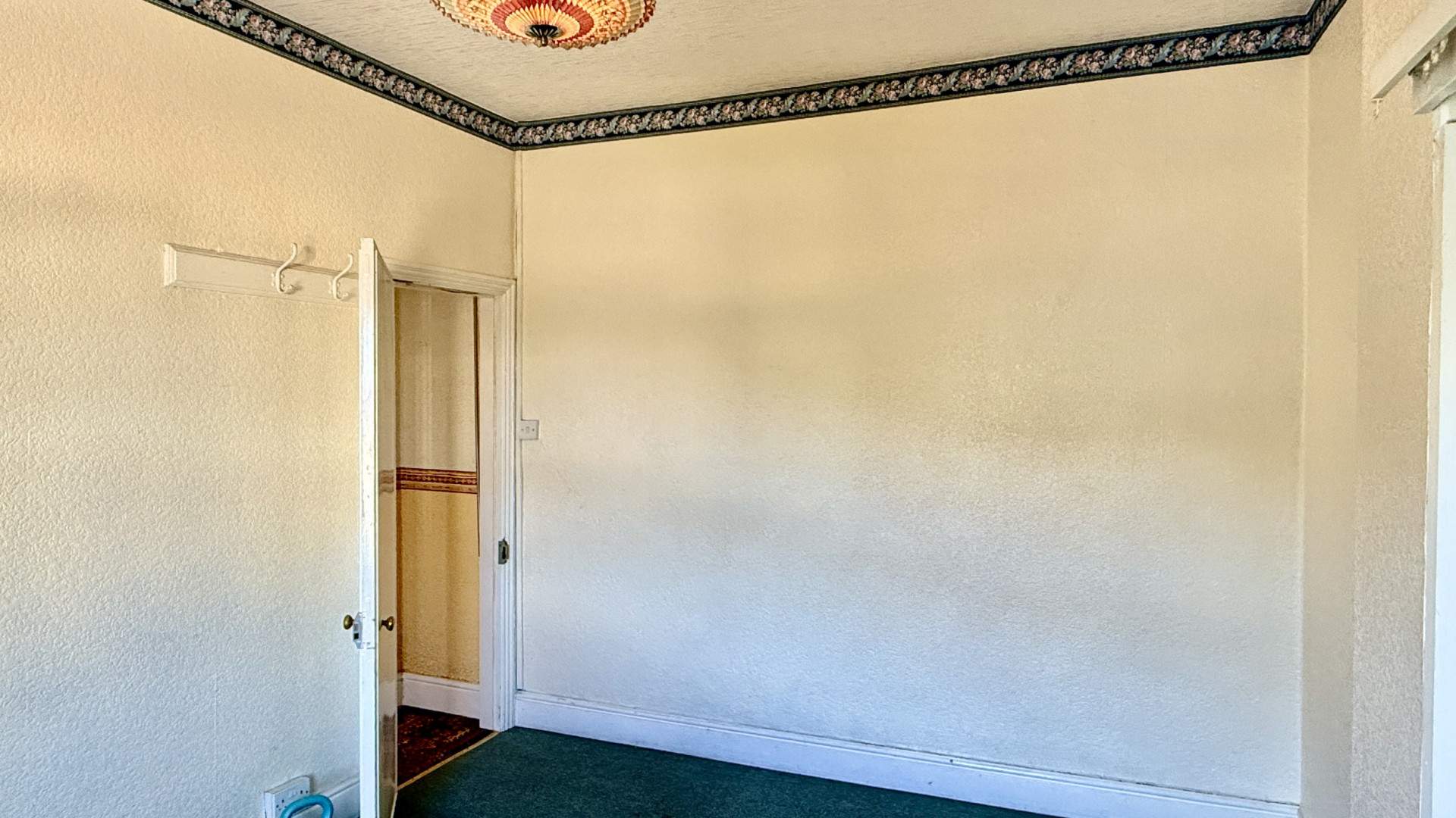 Further large reception room with a double glazed window looking on to the side aspect of the property. The room has two storage cupboards to the right of a disused chimney stack, a ceiling light and is finished with carpeted flooring.