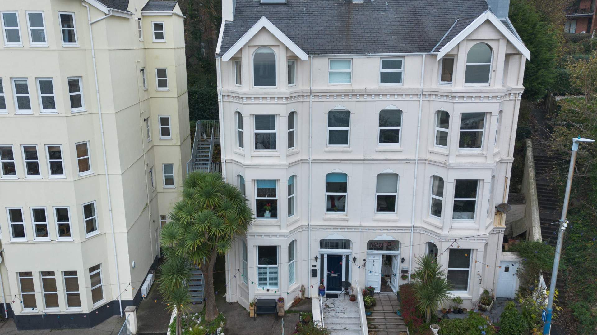 Spacious semi-detached 8 bed house set over 5 floors. Stunning sea views over Douglas Bay. Located within a short walk of Douglas’ town centre & beach. Well-suited for multiple uses such as a family home, annex or 2 separate apartments.