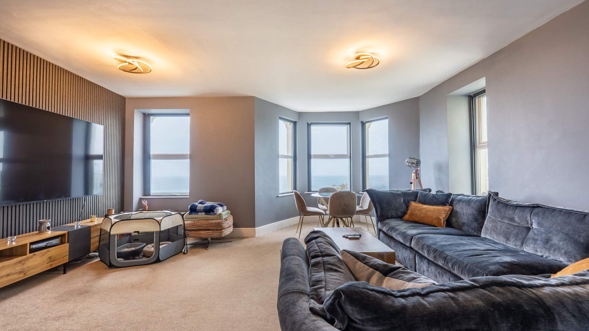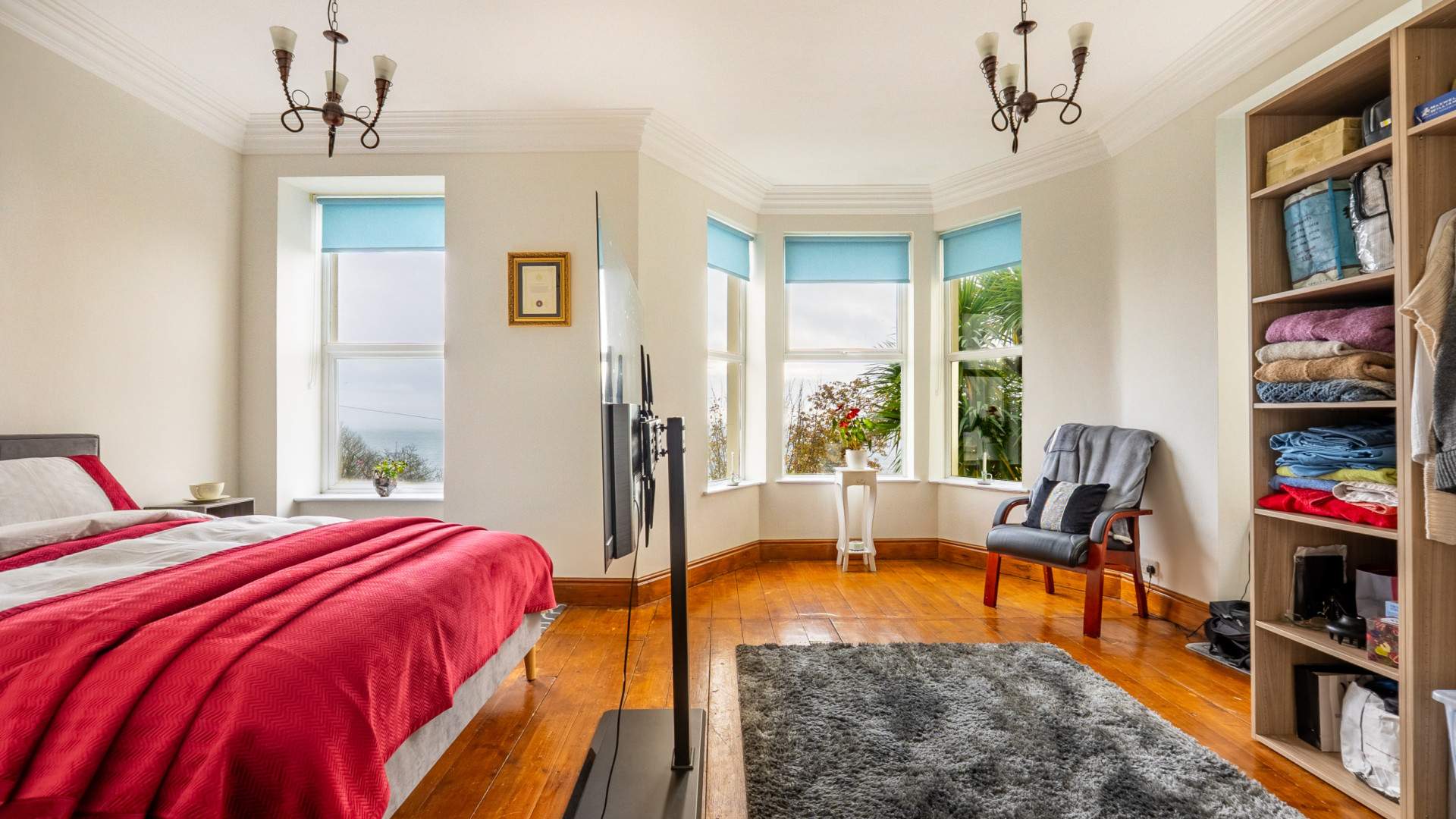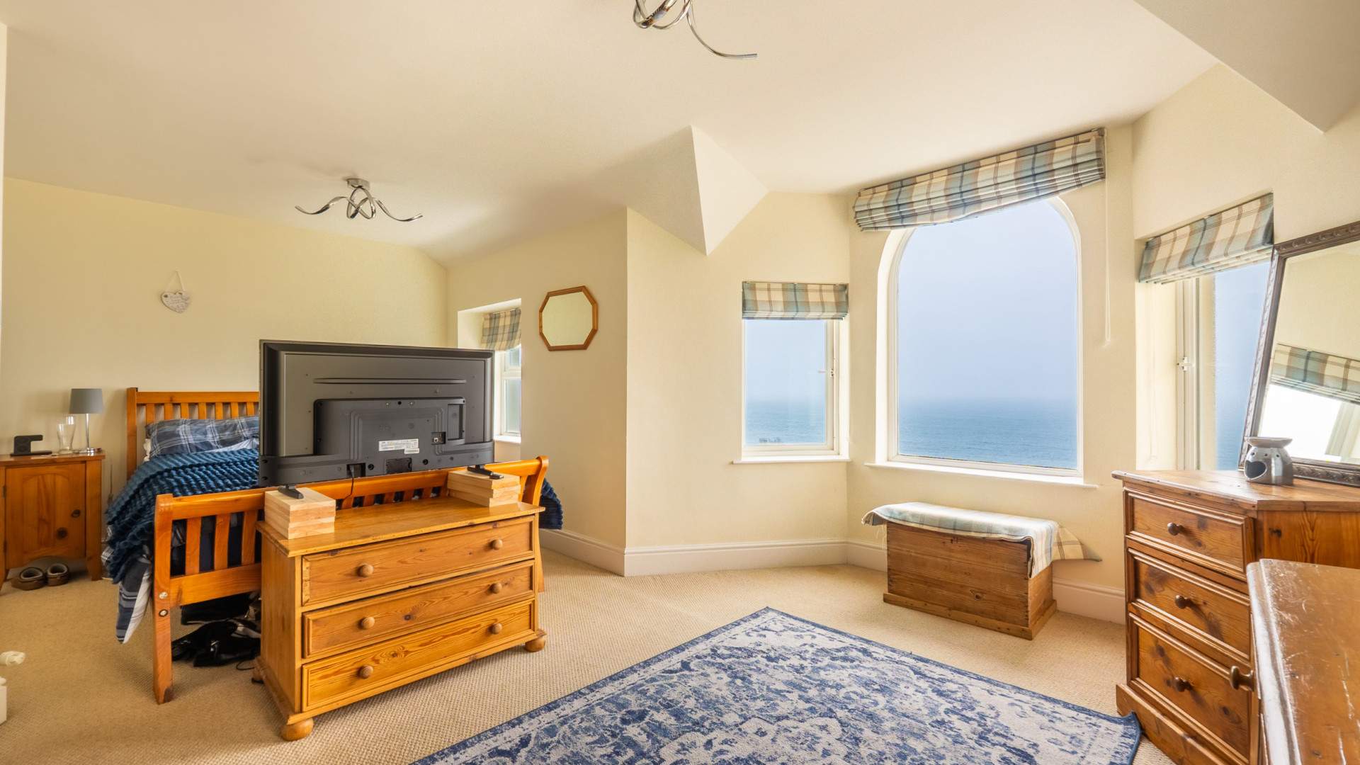Dual aspect room with a large uPVC double glazed bay window providing stunning views over Douglas Bay, out to sea and over to Douglas Head, with 2 separate uPVC double glazed windows to either side.