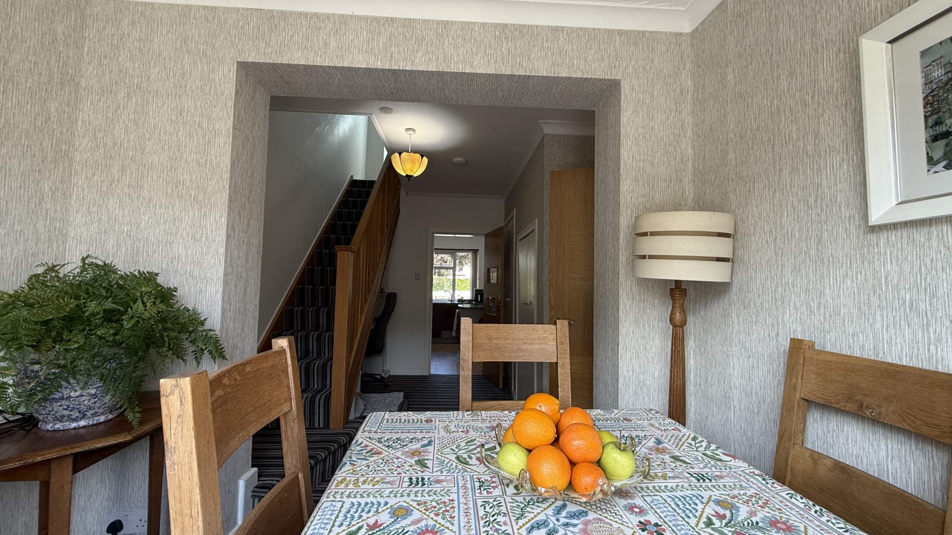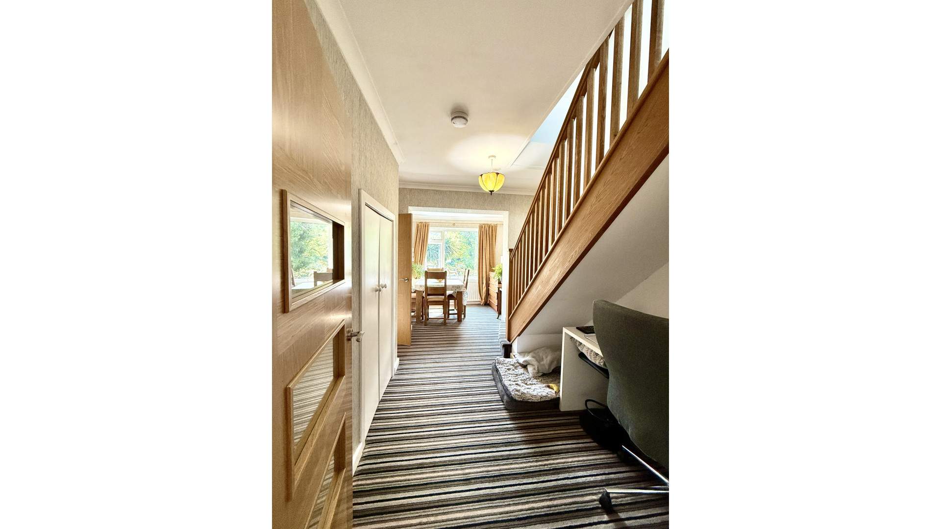 The oak staircase is on your right when entering from the kitchen, with space underneath for a home office area. At the far end of the hallway is currently used for dining to take in the wonderful views to the Albert Tower. To the left when entering the hallway are two cupboards, one for storage and the second cupboard houses the pressurised hot water tank.