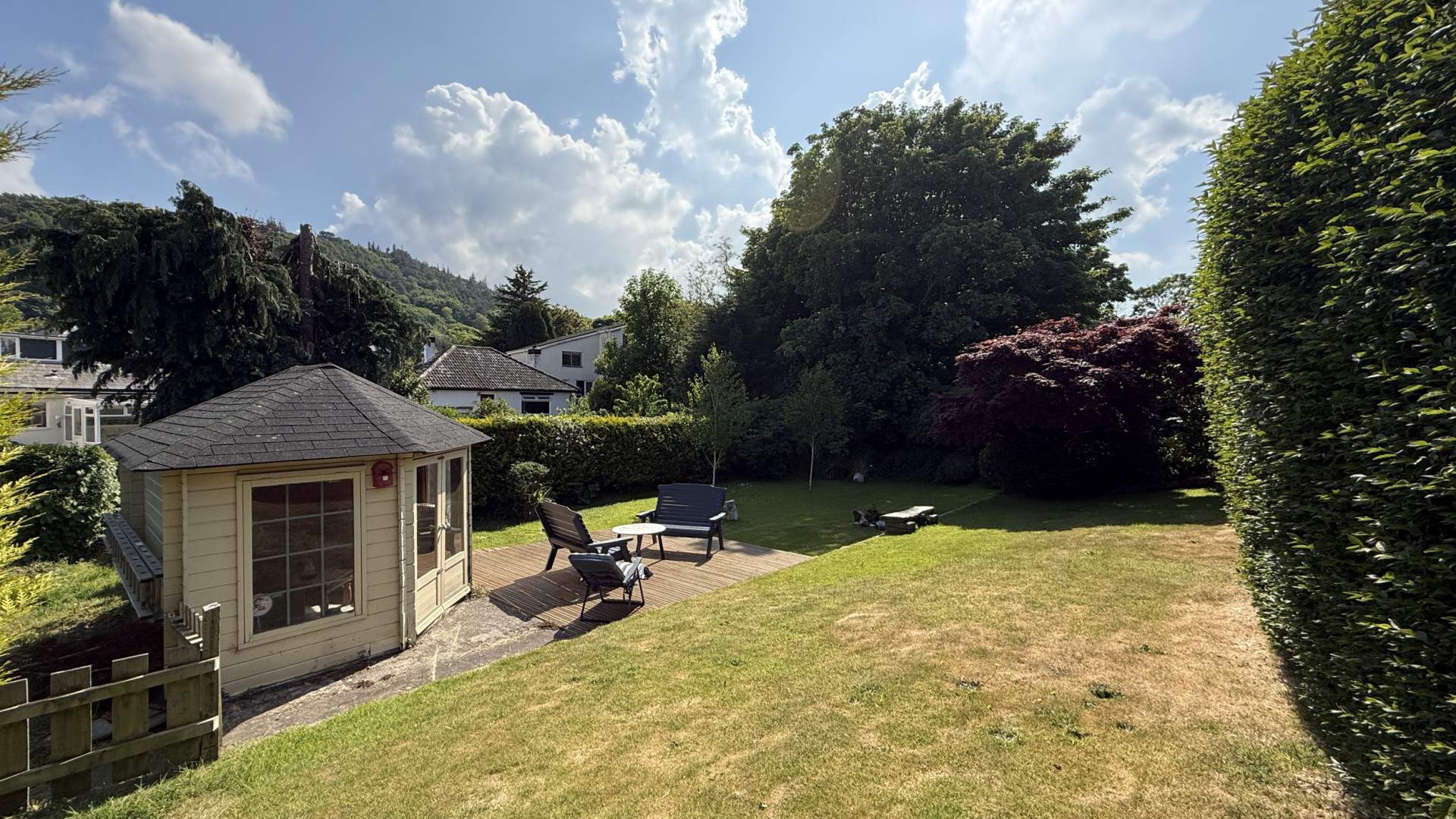 The rear of the property can be accessed from either side and the door leading off the lounge. The beautiful garden is a filled with lots of shrubs, plants and trees. There are two seating areas in the patio area located next to the green house. A gap in the hedge leads to a fantastic lawned garden with summer house and decking. The garden is enclosed with hedging to three sides and a knee-high wooden fence by the summer house. Next to the summer house is space for a trailer which accesses a rear lane.
