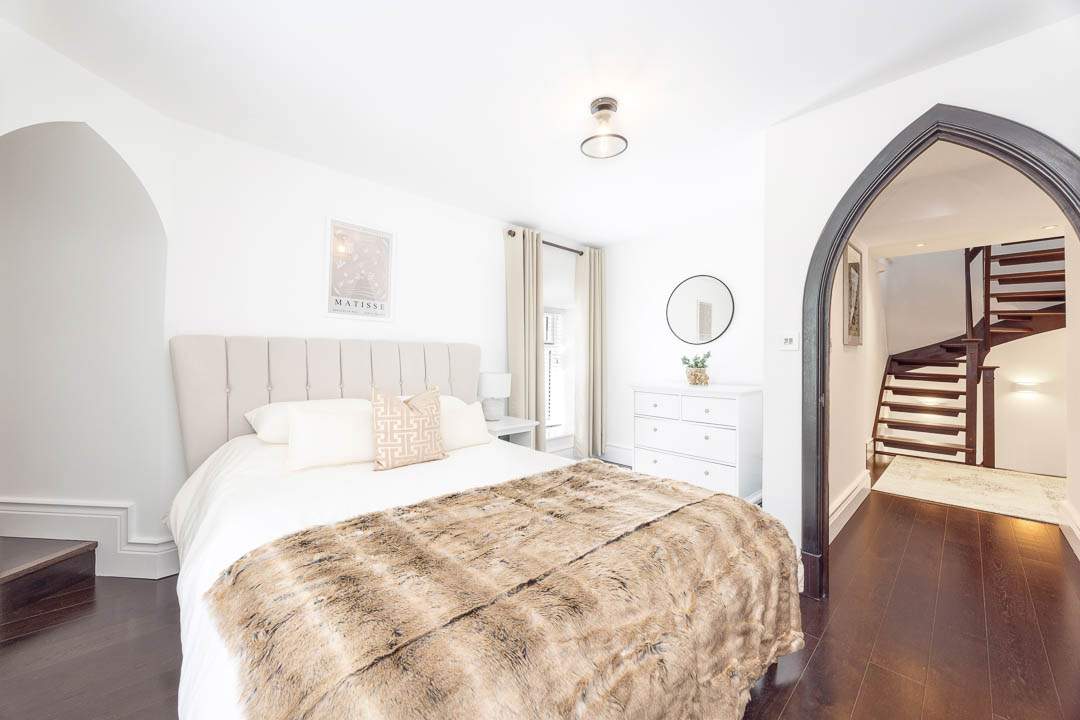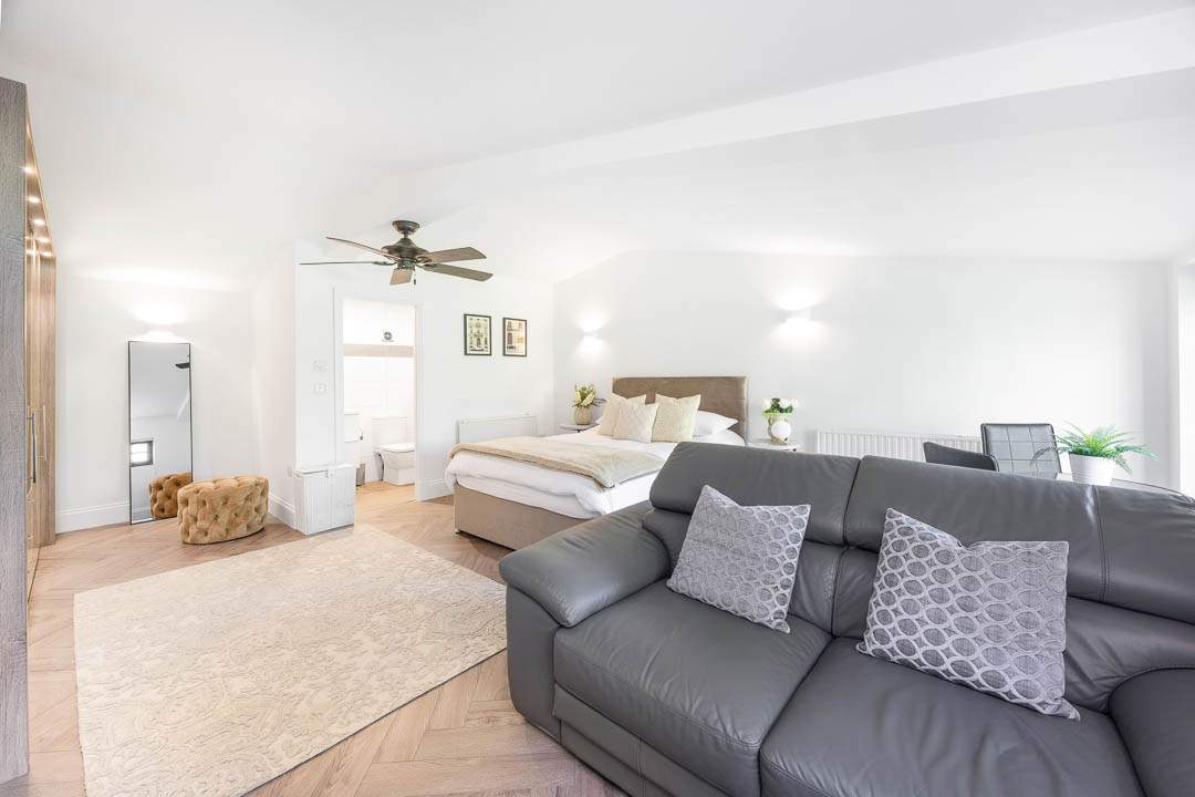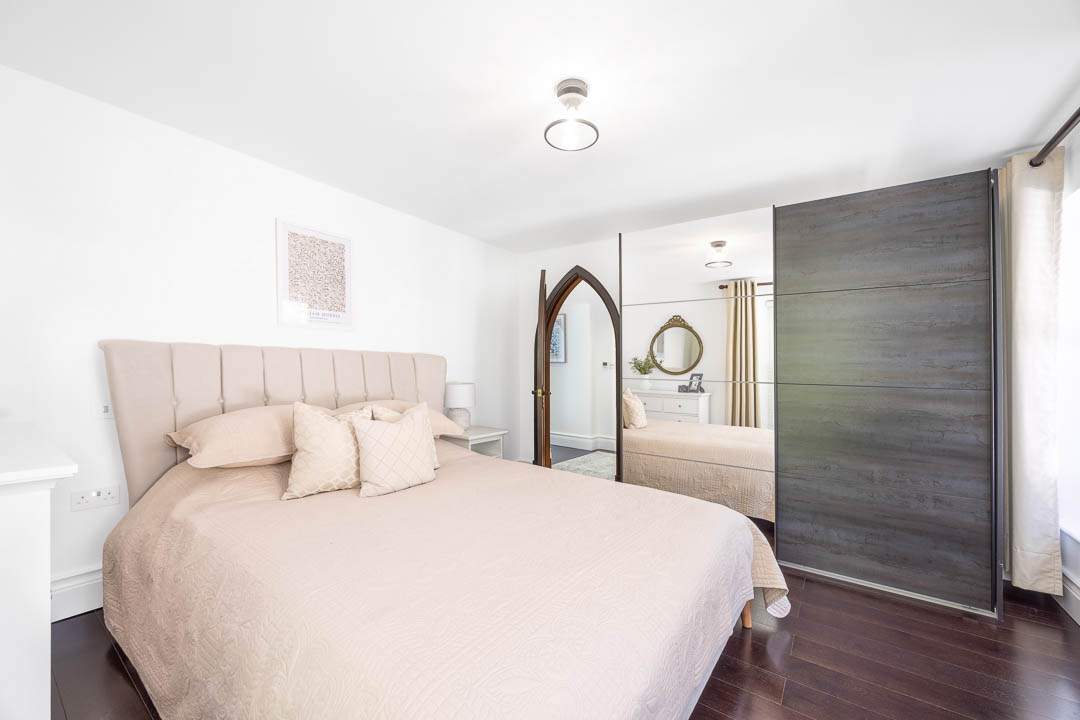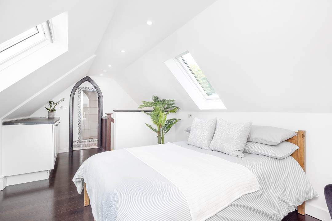 On the first floor are three bedrooms, bedroom two and three are good size double bedrooms. A family bathroom fitted with a freestanding bath, walk in shower, wash hand basin and WC and feature tiled wall. The master bedroom on the first floor has an opening into the first floor turrets, which provides access to a dressing area and a spiral staircase that takes you up to the en-suite shower room, which is situated at the second floor of the building. The staircase on the first floor landing continues to the top floor, where bedroom four can be found. Bedroom four has Velux windows offering plenty of natural light, and has been converted to current planning standards and has an en-suite shower room. Via the Velux window there is access onto the rooftop for the flag pole.