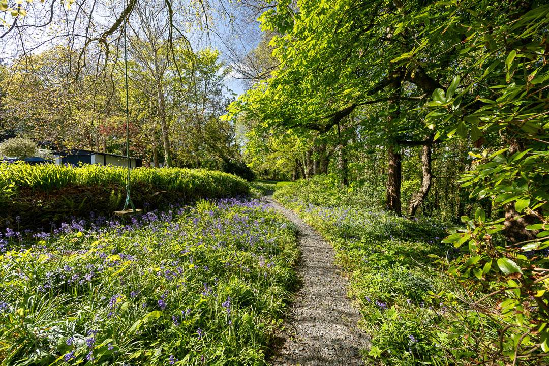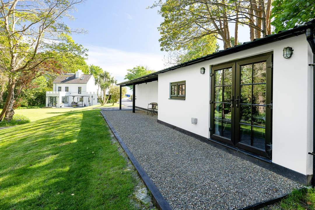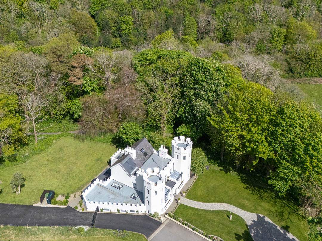 In addition to the principal dwelling, there is a detached double garage with a newly laid tarmac drive with ample parking for several vehicles. At the rear of the garage, is a self-contained modern studio annex with an open plan, living/kitchen/bedroom space and an en-suite bathroom, the studio annex has its own entrance hall and covered patio area. Also within the grounds, the vendors have created footpaths through the wooded areas, surrounded by snowdrops and bluebells through the late spring months. Beyond the woodland, down one of those footpaths, is an additional single story turret, which currently houses an open plan living/kitchen/dining space with a covered walkway linking to a two bedroom guest accommodation, which also has a family shower room, perfect for holiday accommodation or just as an additional annex to the property.